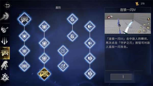 盾防的技能加点顺序:守护之刃>连锁一闪>护盾强化>爆裂闪击、CD>蓝耗,五连闪击打boss清小怪都很好用,伤害也高,