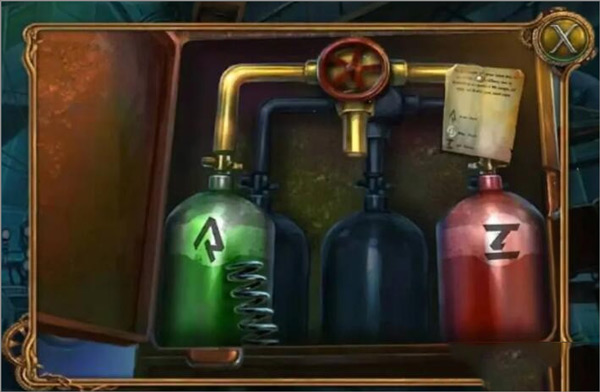 2、打开电控门,后面有两个罐子,里面分别是装的空气成分氮气和二氧化碳,中间缺了一个瓶子,里面应该是氧气,在柜子里得到弹簧。