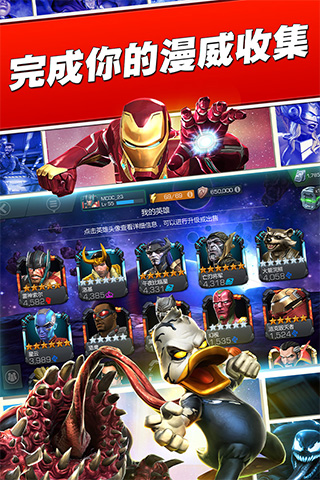 1、漫威超级争霸战集结全宇宙的英雄,和灭霸一较高下;2、每个英雄有多重培养方式,不同的英雄还能组队产生团队效果;
