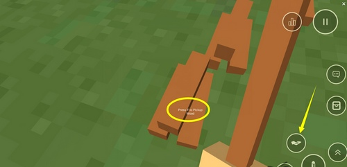 3、连续狂砍几次后,小树就消失变成木头,然后靠近木头,等出现可收取的英文提示后点击右边的手型按钮即可捡起木头,记住要靠近木头出现英文提示才可以喔!