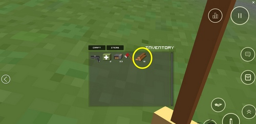 1、首先既然是要砍树,那就肯定得换把斧子,点击右侧包裹按钮找到斧头,再点它选择绿色的use(使用)按钮即可。