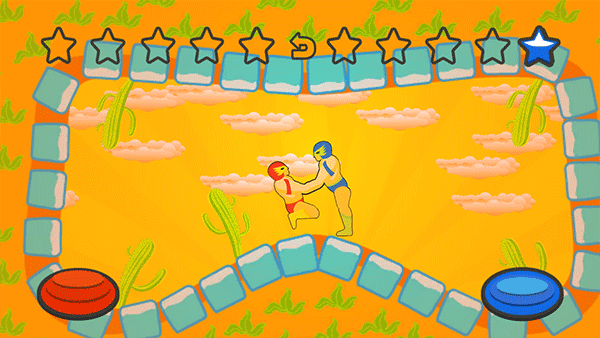 基友摔跤小游戏是一款以摔跤为题材的休闲小游戏,英文名为Wrestle AMAZING 2,游戏以浓艳色彩的涂鸦风格呈现,界面十分简洁,只有左右两边的红、蓝两个按键,人物形象刻画的也是诙谐有趣,尤其是对战前的准备姿势,让人忍俊不禁。朋友摔跤的玩法很简单,双方通过摔跤的方式,率先让对手的头部触地则获胜,游戏中会随机出现不同地形的场景,比较考验玩家出击的技巧和时机,并支持单机和双人模式,你可以邀请好友一决高下,感受儿时摔跤的乐趣。