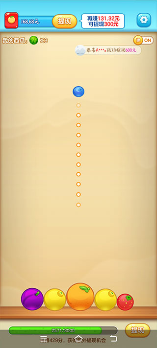 1、指尖点击快速合成,还有很多的道具可以帮助你完成合成的进度。2、通过合成西瓜让它等级和形状边的更大,售卖即可获得相应的红包福利。