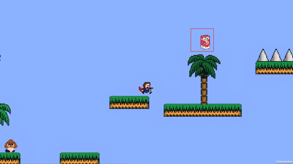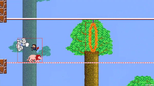 4、这个场景跟马里奥玩法类似,通过头顶上方带有问号的小箱子获得白色方块中的各个技能。