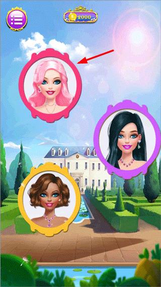 1、打开公主化妆换装游戏,有三位公主可选择装扮;