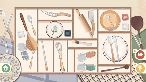 1、首先我们进入这关以后就可以看到碗柜摆放凌乱,玩家需要耐心的给它整理好。