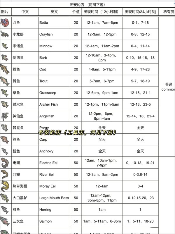 月兔漫游最新版本钓鱼时间表图鉴