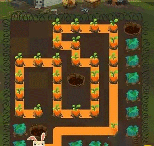 1、游戏是三星机制,分多章节多关卡,集齐星星可解锁后续章节。也有体力限制,若是关卡剩余实物超过限制,则会扣除体力,一定时间后即可恢复。好在关卡中,没有时间限制,玩家可以慢慢思索正确的路线,只要不轻易下笔,就能畅玩下去。游戏的内购包括路线提示和章节解锁,玩家可量力而行。2、兔子们报复的方法就是吃光农场里的菜,实现手段则是采用一笔画成的思想,要求玩家用手划出一条不能交叉、不能回头的吃菜之路。游戏里,我们要从兔子所处的位置出发,沿路吃掉所有挡路的蔬菜,直至终点的小土洞。