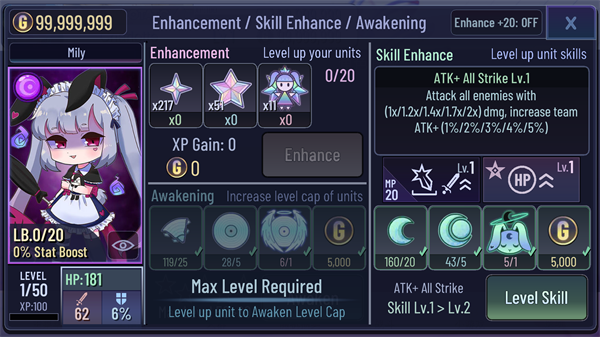 1、玩家可以通过学习技能和获得经验值来提高自己的属性值,变得更加强大。