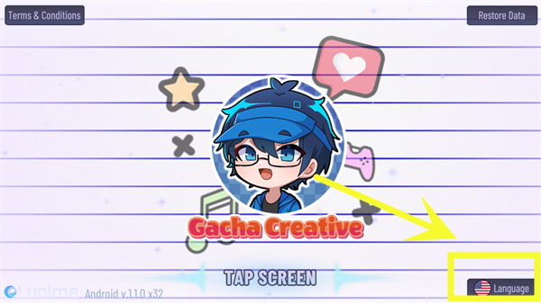 1、在本站下载并安装加查创意官方最新版,进入游戏后可以看到游戏默认为英文,需要点击右下角按钮,如下图所示