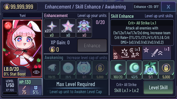 4、使用材料来增强,唤醒并提高技能水平!