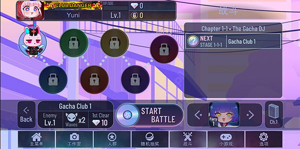 加查故障还有中文调设方法:进游戏后点击右下角,选简体中文就能玩了。玩法也很简单,主菜单可以自定义角色的头像、身体、服装、配饰和宠物,战斗关卡能无限次打,抽卡需要钻石,还能玩各种小游戏。