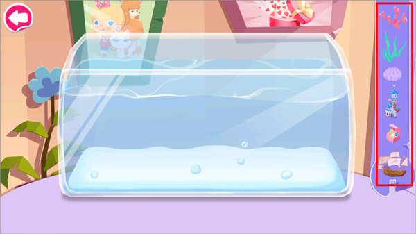 5、利用右侧的装饰品布置一下鱼缸,放入小鱼苗,倒入鱼食就打扫好了,待一切修理收拾完毕后,整个房间感觉焕然一新;