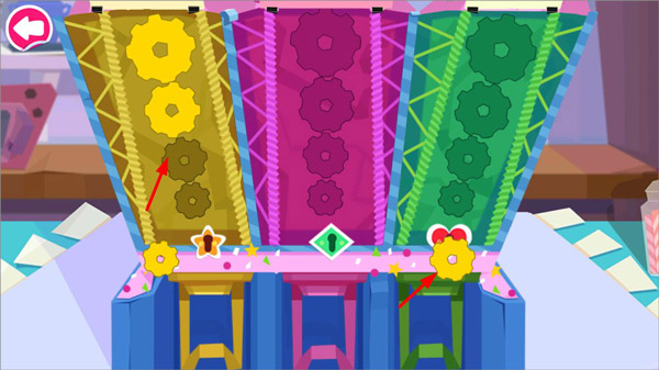 6、修理小达人糖糖饮料机又故障了!快帮糖糖妈妈修理好饮料机,首先需要选择正确的钥匙打开饮料机;