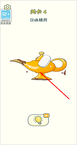 关卡4:此关卡会有一个充满泥渍的阿拉丁神灯,仅需将上面的泥渍擦除就能召唤出精灵满足你的愿望啦。