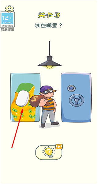 关卡3:这个关卡内有一个小偷,你可以将左边的保险柜擦除拿走大量的钱,当然右边的会出现警察哦。
