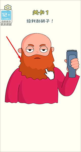 关卡1:使用刮胡刀左右滑动屏幕即可将男人的大胡子刮干净。