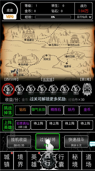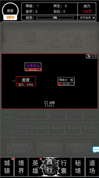3、点击西行功能开始你的西行之旅,不断进行战斗;