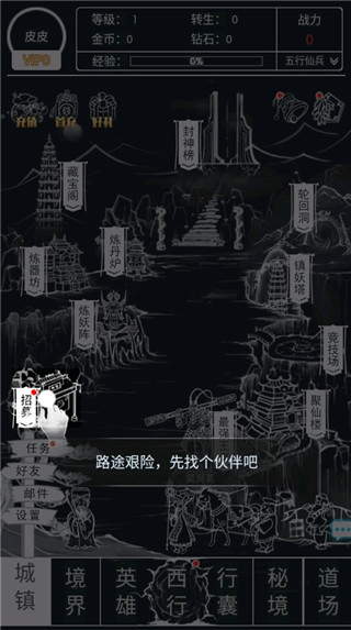 1、下载进入梦回西游记手游,路途艰险,点击招募先找个伙伴吧;