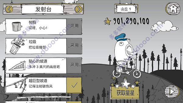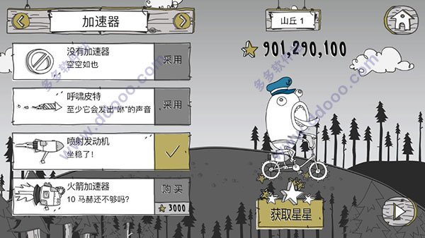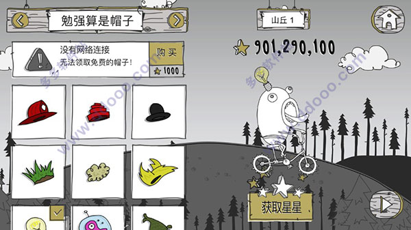 呆瓜历险记是一款挺有意思的横版冒险游戏,玩法简单又有趣。玩家骑着自行车,通过点击屏幕加速,遇到斜坡时还能滑动跳跃得更远。游戏中有各种道具和改装车辆的选项,比如车轮、加速器、发射台等,这些都能帮助你跑得更快更远。还有丰富的帽子皮肤,用星星解锁后能让角色看起来更炫酷。