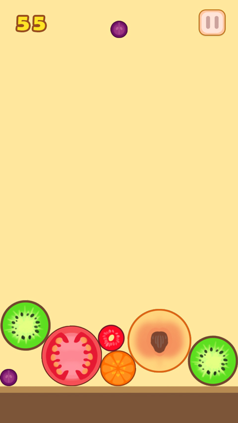 2、在这款游戏中是没有获胜的,玩家只能积累更多的分数。而失败的条件和俄罗斯方块一样,水果积累的空间超过规定区域就算失败了哦。