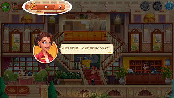 1、打开帝国发烧酒店游戏,将会开启一段教程引导,