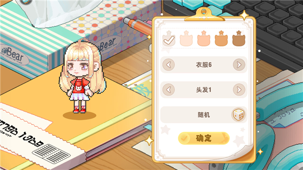 3、定制自己角色的形象,如肤色、发型衣服等;