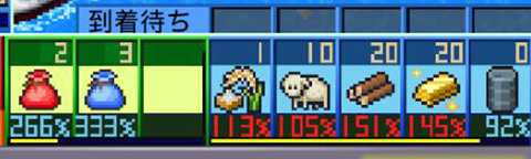 2、之后就是比较重要的玩意:跨国贸易。在上图中,最下面人口对应的一栏中,前三个格子代表着你的商品,商品上面的数字代表着你的仓库中的货量,下面的数字代表着人气。后面的五个格子代表着五个国家对外贸易的原材料,材料上面代表你的港口现在总有的材料数量,下面则代表的是进口材料原来市场价的百分比价格,