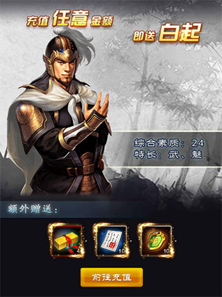 活动内容:在活动期间内,陛下完成首充即可领取绝版门客-白起!
