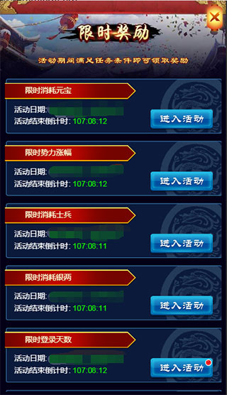 1、活动期间开启三个冲榜:银两消耗榜、势力榜、关卡榜