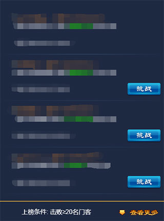 同样主界面右下角的【防守记录】中,老爷可以查看前来挑战自己的玩家,如果对方击败我方5名门客以上就会直接进入仇人的名单,击败大于等于20名门客即可上当日挑战榜!