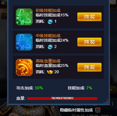 加血量,可以让门客的血条恢复一定比例;加临时攻击,可以增加门客对敌方的攻击伤害;加技能加成属性,可以使暴击伤害增加。