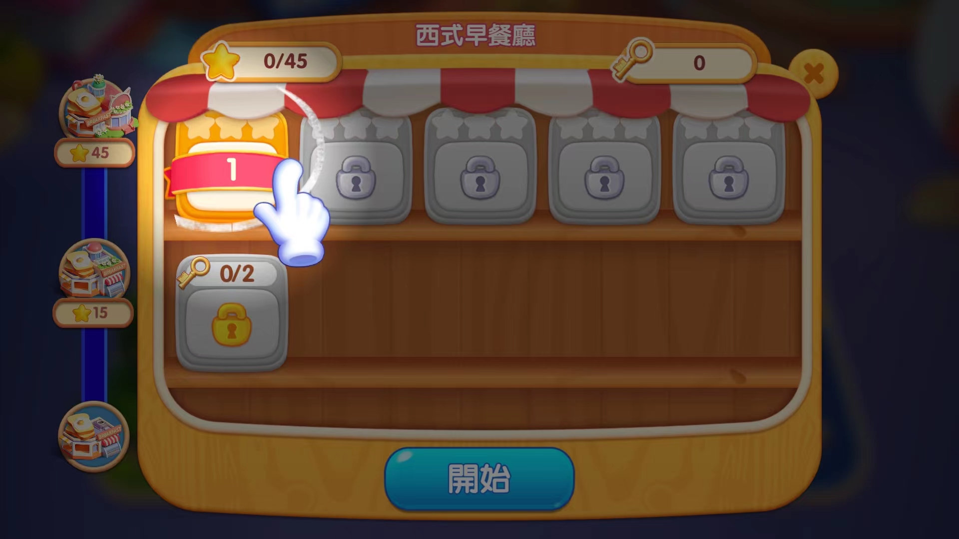 1、打开梦幻餐厅3官方版,我们选择【开始】选项,