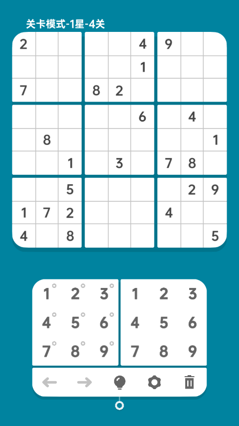 一星二星,可以帮大家练习基本速度。可以无脑循环,打开辅助器,从1点到9,筛出同行同列同宫格的数字唯一项即可,循环操作,即可通关。主要是练手速和眼力。达到3分四分左右,嫌没意思就可以跳下面的了。