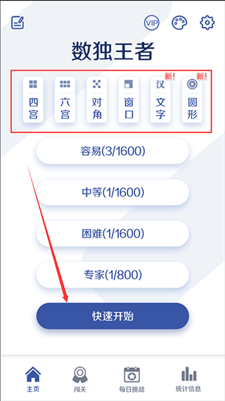 1、进入游戏后有四宫、六宫、对角、窗口等各种玩法的数独可供玩家自由选择;