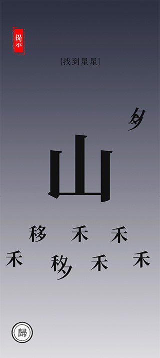 点击日,会变成夕,将夕与禾组成移,将移放在山上两次。