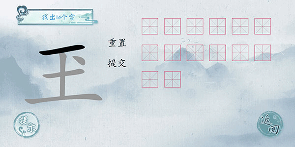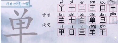 2、不知道这17个字是哪些的,可以看上面的字,然后按照顺序在单字上面写出来就可以通关了。