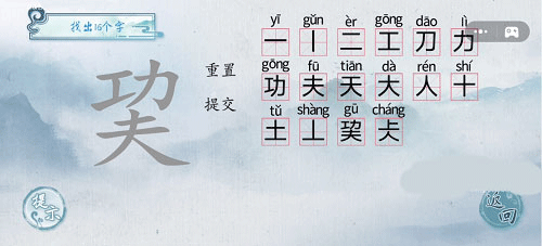 2、不知道这16个字是哪些的,可以看上面的字,然后按照顺序在巭上写出来就可以通关了