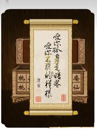 1、探寻唐伯虎真迹首先需要完成场景一,场景一:按住指针拖动到3-5中间,出现寅的轮廓,将下方的偏旁拼到寅的轮廓里,