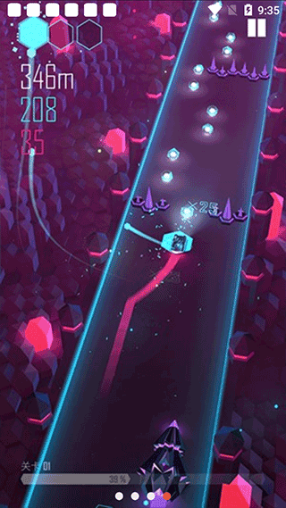 电音超跑作为一款竞速类音乐游戏,电音超跑的玩法还是相对比较的通俗易懂的,在这里你将成为一名孤独的驾驶者飞驰在被节奏操控着的凄寂冷漠的虚拟世界里,在这里你只需要通过左右滑动以实现左右侧的移动,上滑跳跃和下滑来操作赛车进行赛跑即可。期间随着赛车的不断向前,大家还可以体验到冲刺、护盾和磁铁三样道具。一路上,您需要越过各种障碍并击败沿途的敌人直到完成所有关卡。在享受各种精致唯美的游戏场景的同时,您还可以解锁专属于您的设计独特的超级跑车。