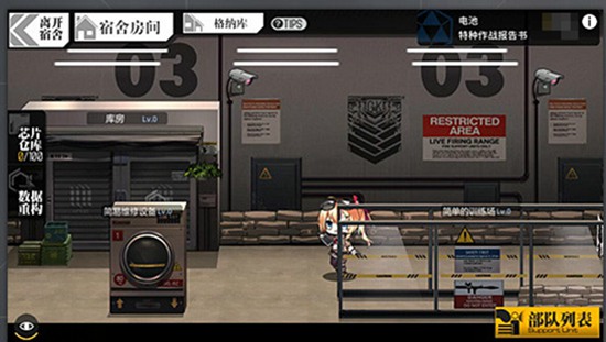 1、附属房间:格纳库附属房间格纳库,格纳库中有着新设施训练场、维修设施、库房。