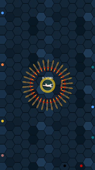 【游戏玩法】总体来说,游戏的难度不大,与一般的io类游戏玩法相类似,但在规则上却有些许差异,主要还是以操控着飞刀来击杀对手为主旨,但唯一不同的是防御状态下你会处于无敌,从而让弱小的敌人也具备一定的反击能力。