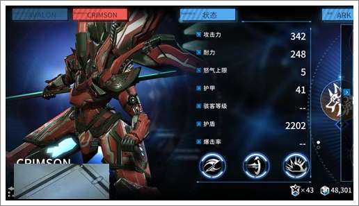 从数据上可以明显看出,阿瓦隆的优势在于耐力,而绯红的优势在于攻击力,其余数值相差无几,看来绯红是一台主打暴力输出的机体。