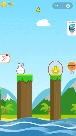 3、一旦兔子成功跳跃到其他木桩,就可以获得游戏分数。