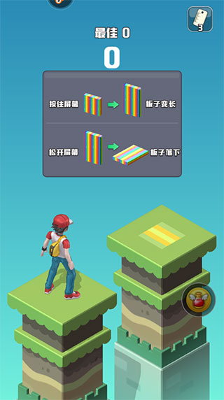 1、进入游戏后,长按屏幕后板子会变长;松开屏幕板子落下,然后角色通过板子走向另一端。