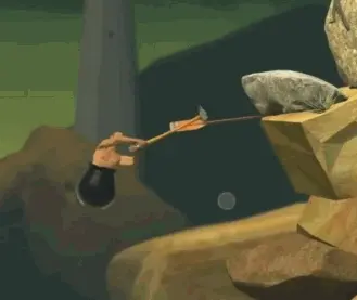 在游戏当中你将只能使用一把锤子和一个锅攀越高山,在我们常人眼中看起来根本是不可能完成的,这也就是游戏想传达一下不抛弃不放弃的精神,即使在游戏当中一次次的坠落、退后,从山上掉到山底也要爬起来继续攀岩。