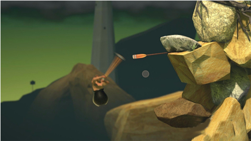 3、遇到第三个障碍,我们需要先把自己弹起来,直接利用第一块石头跳到第二个船桨上,然后慢慢挪动锤子继续往上;