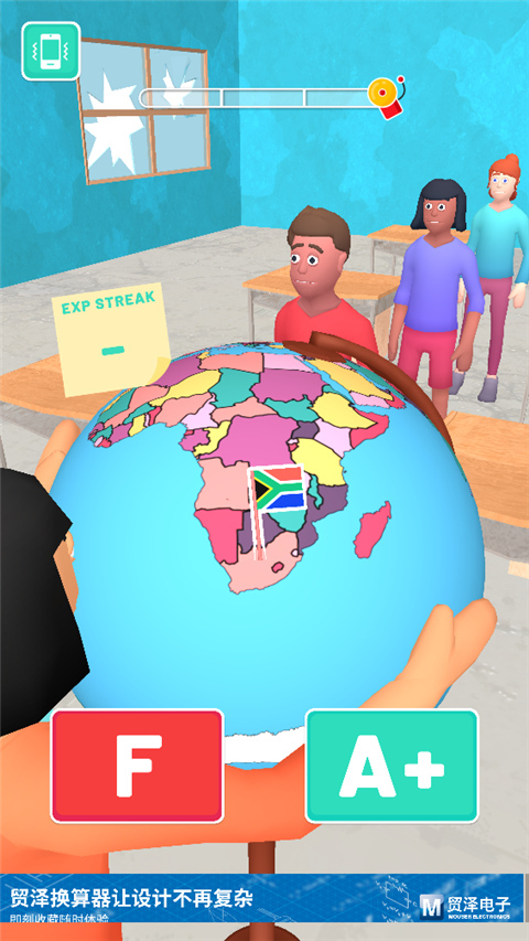 操作上不复杂,根据学生的答案是否正确给分就行了。但要完全通关的话,必须每个评分都准确无误,这点有点挑战性。尤其是当学生们表演得很精彩时,自己总想给他们高分,但又担心判断失误。游戏中还能布置教室,选择不同的装饰,增加了趣味性和个性化。