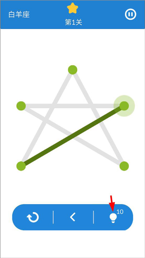 4、进入游戏后,玩家需要一笔画成整个完整图片,不能间断,如果不知道怎么通关还可以点击右下角的灯泡图标查看提示;