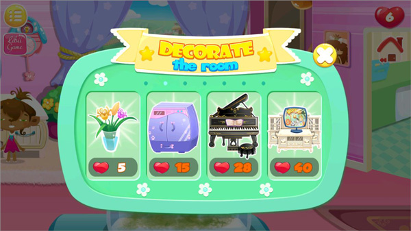 7、完成了小游戏后,还会获得爱心哦,当收集的爱心达到一定程度时,就可以去爱心商店换购温馨的装饰、家具让家里变得更温馨啦;